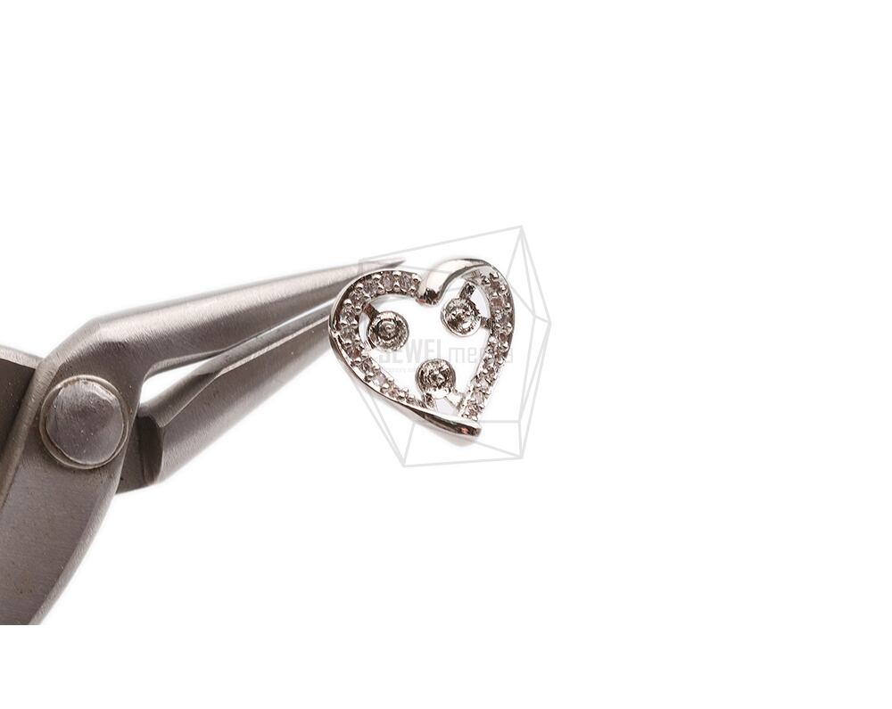 ERG-2388-R/2PcsCZHeart Ear Post/ 13.6mm x 13.8mm/Rhodium Plated over Brass,Silver Post.CZ
