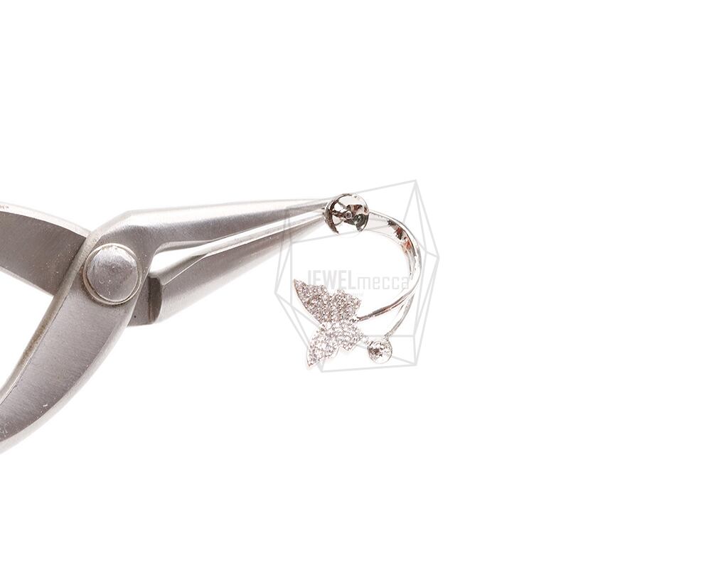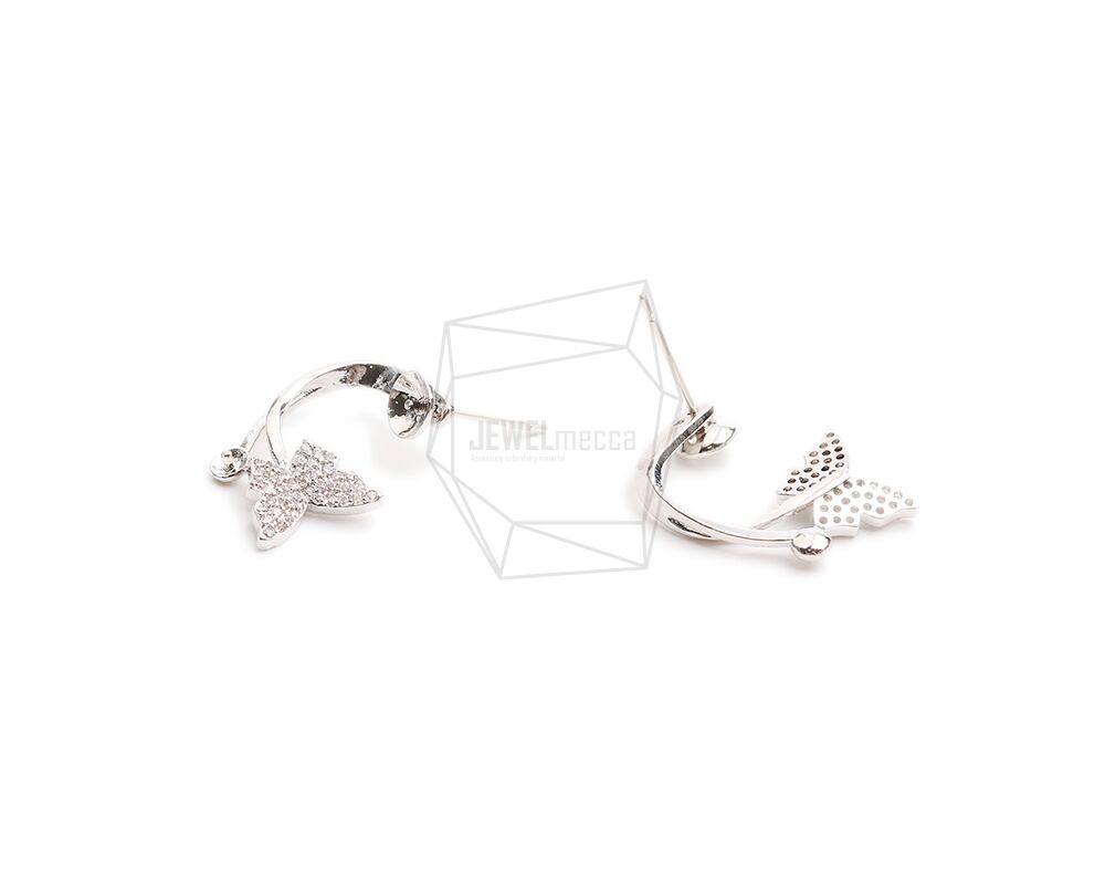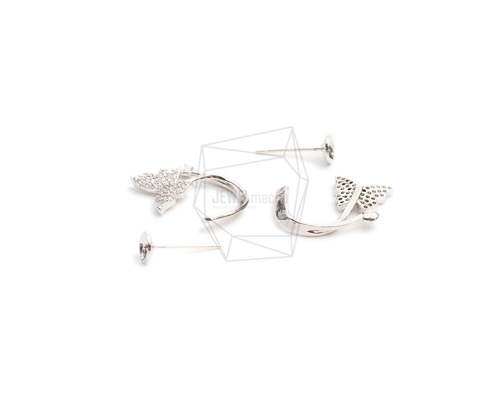 ERG-2392-R/2PCS/CZ Butterfly Earring Post/13.5mm x 18.3mm/Rhodium Plated over Brass,Silver Post.CZ