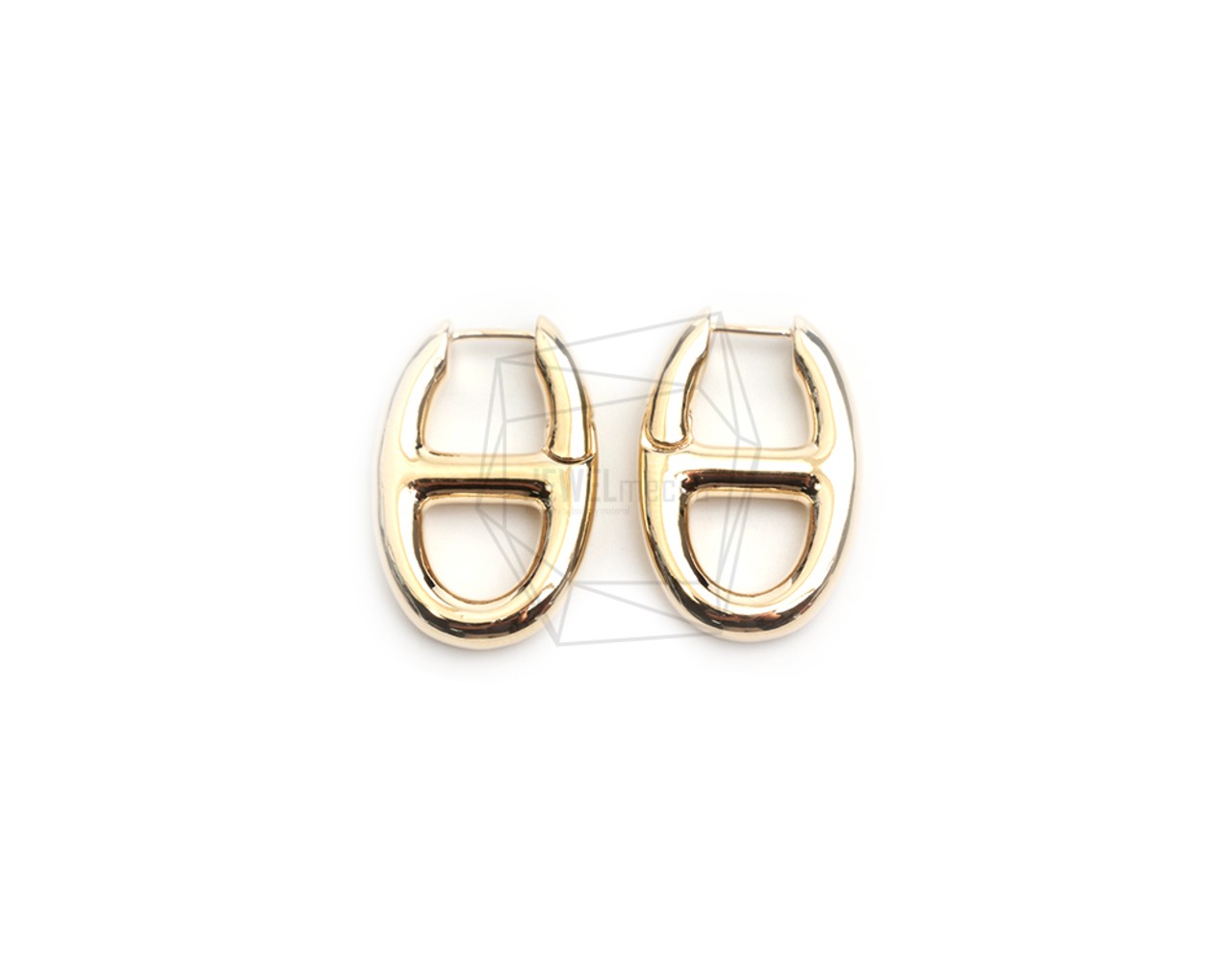 ERG-2398-G/2PCS/Round One touch Post Earring/16.5mm X 25mm/Gold Plated Over Brass