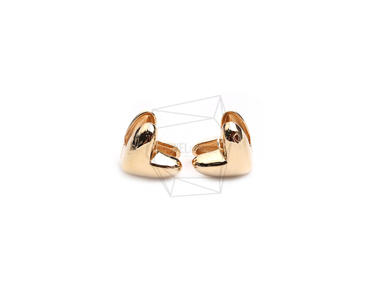 ERG-2399-G/2PCS/Heart One touch Post Earring/12mm X 14.5mm/Gold Plated Over Brass