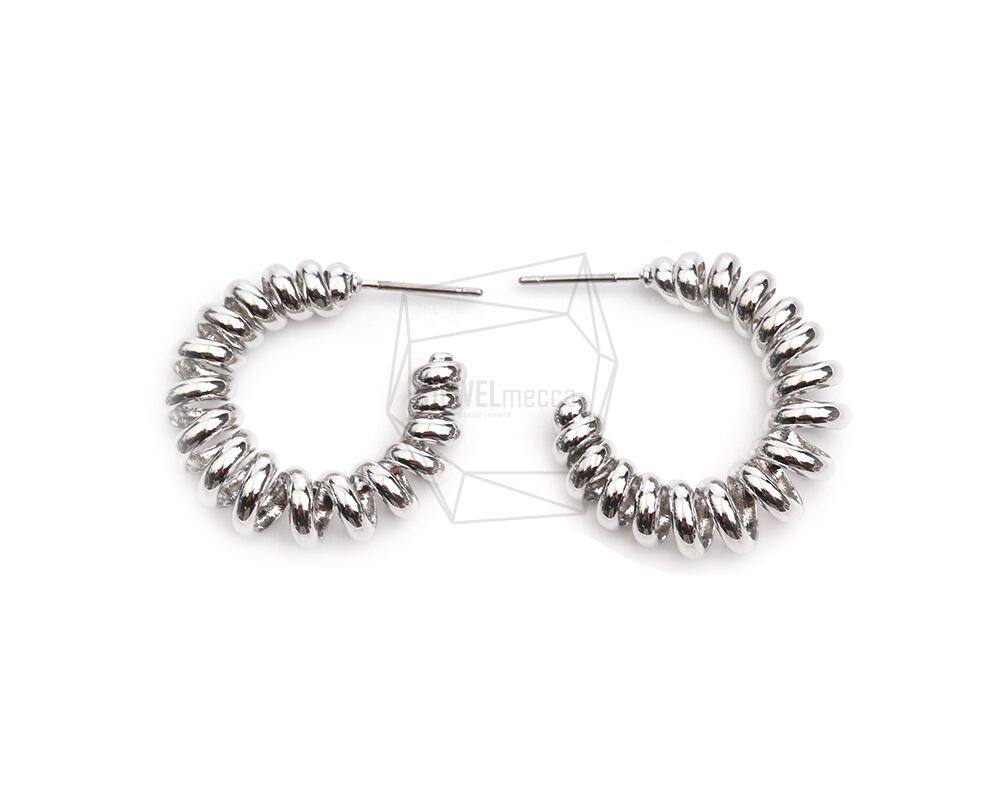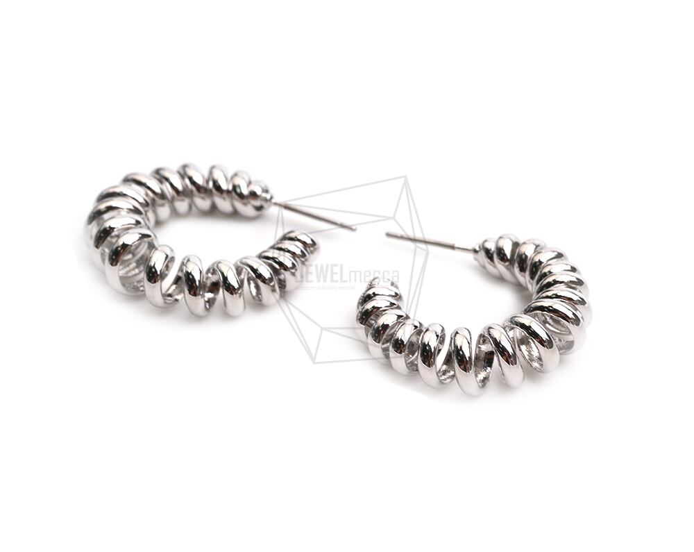 ERG-2400-R/2PCS/spring round Post Earring/21.5mm X 25mm/Rhodium Plated Over Brass,Stainless Post