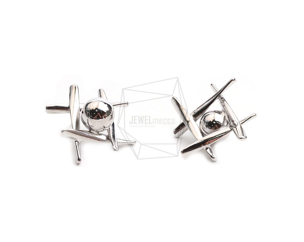 ERG-2401-R/2PCS/Ball Post Earring/26mm X 26.6mm/Rhodium Plated Over Brass,Stainless Post