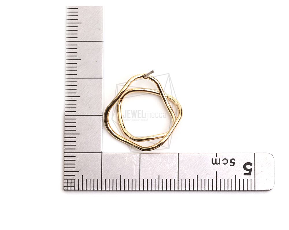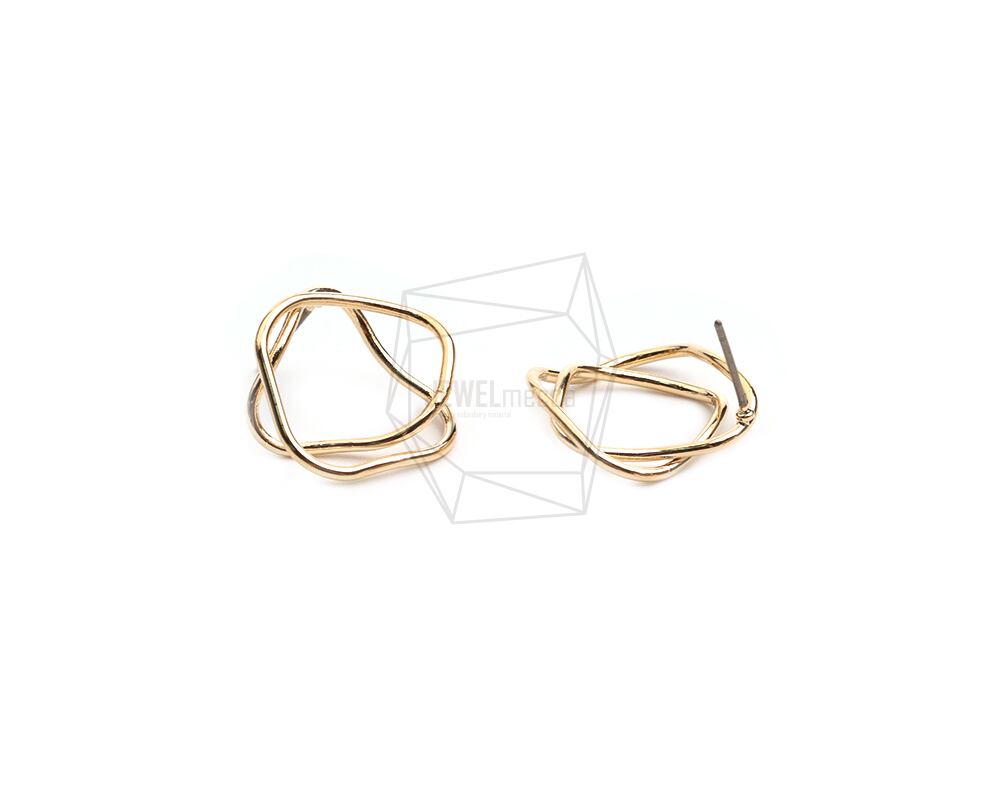 ERG-2406-G/2PCS/Double Round post earring/20.5mm x 20.8mm/Gold Plated Over Brass ,Titanium post