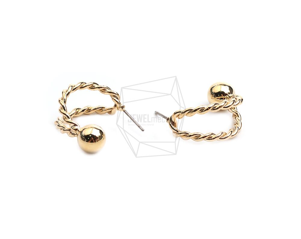 ERG-2408-G/2PCS/spring round Post Earring/15.6mm X 23.6mm/Gold Plated Over Brass,Stainless Post