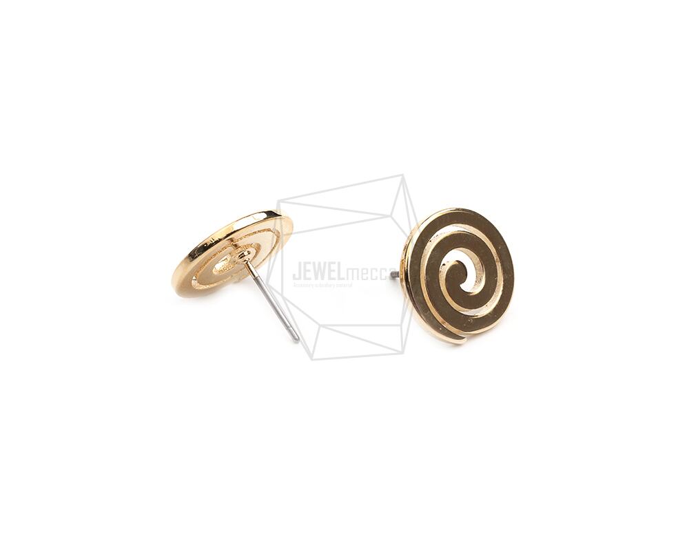ERG-2409-G/2PCS/Lollipop round Post Earring/14mm X 14.5mm/Gold Plated Over Brass,Stainless Post