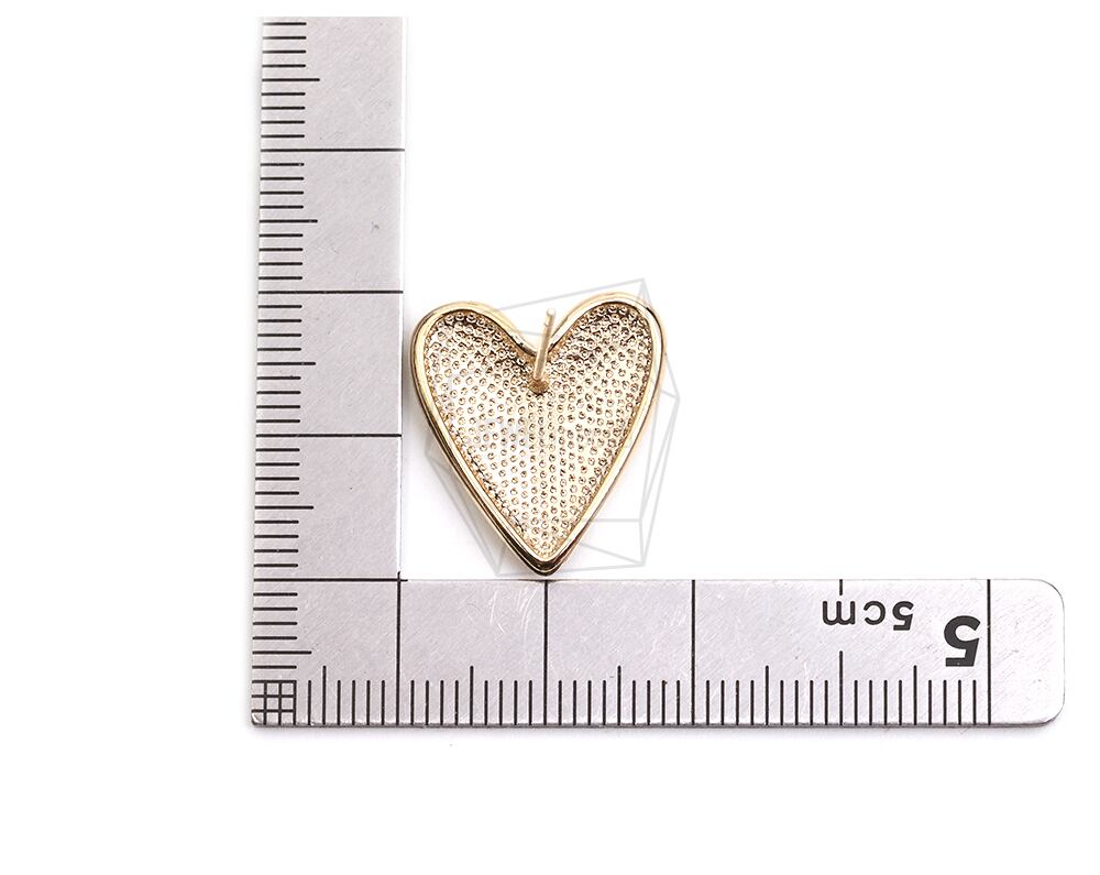 ERG-2417-G/2Pcs-Heart Ear Post/ 17.6mm x 19.6mm/Gold Plated over Brass,Titanium post