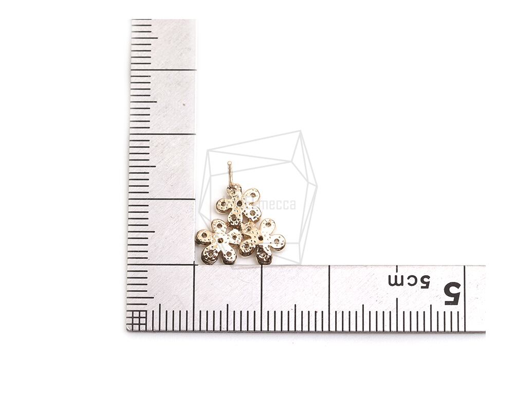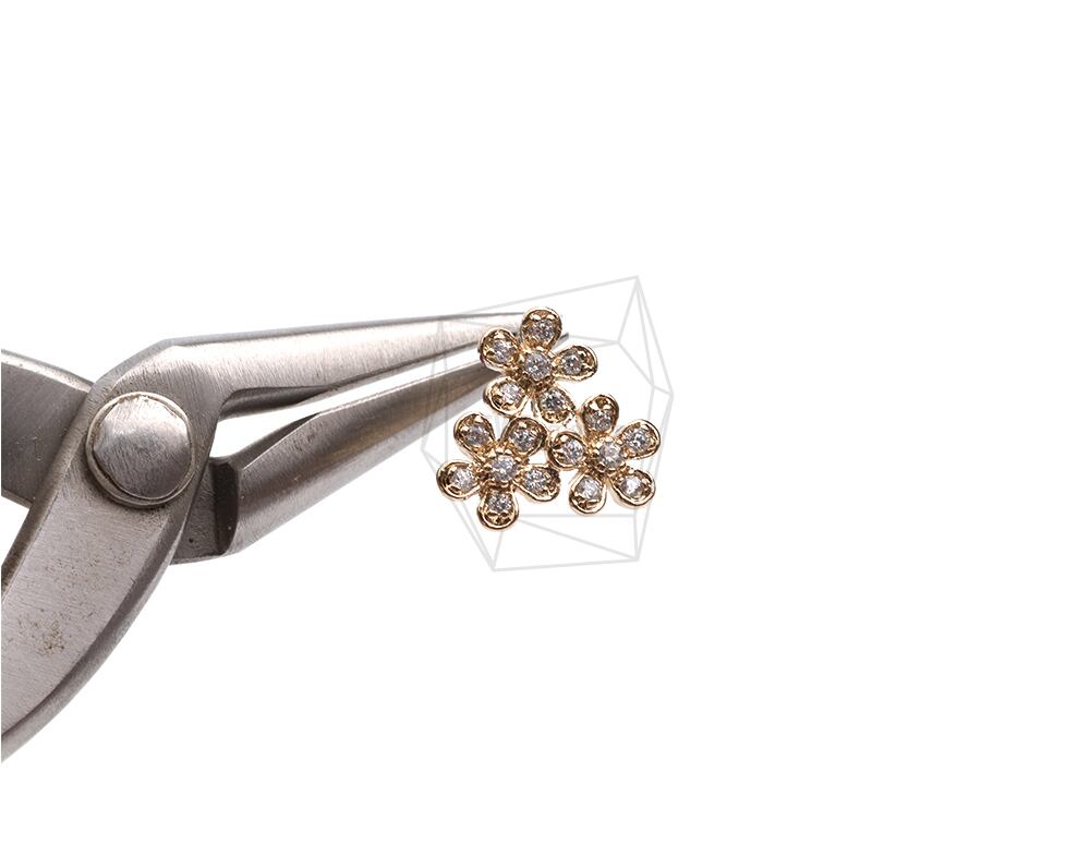ERG-2422-G/2Pcs-Cubic Zirconia Setting Flower Ear Post/ 12.5mm x 13.5mm /Gold Plated over Brass/Silver Post