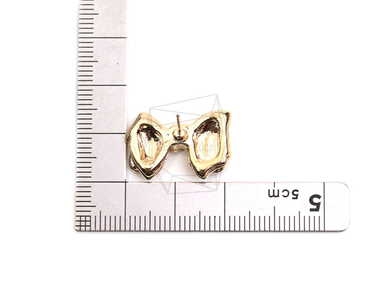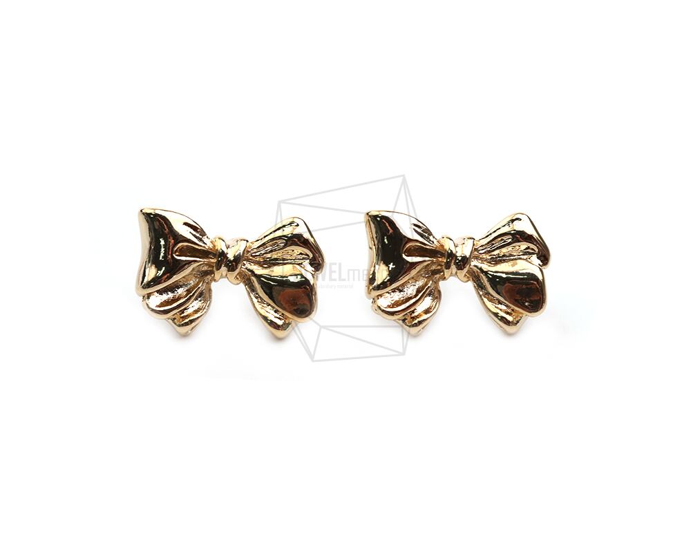 ERG-2424-G/2PCS/Rope Ribbon Earring/14.4mm X 21.5mm/Gold Plated Over Brass,Titanium post