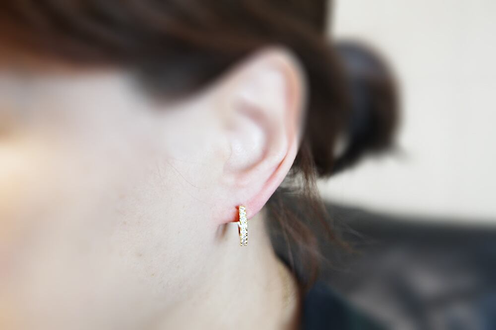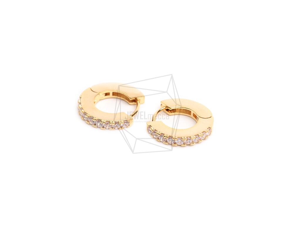ERG-2430-G/2PCS/Round One touch Post Earring/15.6mm X 17.2mm/Gold Plated Over Brass,CZ