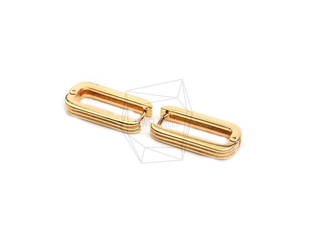 ERG-2433-G/2PCS/Rectangle One touch Post Earring/9.7mm X 20mm/Gold Plated Over Brass