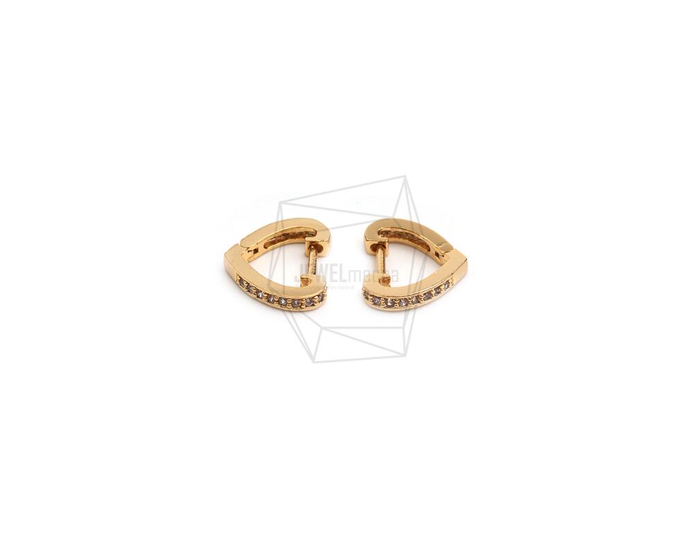 ERG-2432-G/2PCS/Heart One touch Post Earring/10.4mm X 13.2mm/Gold Plated Over Brass,C2