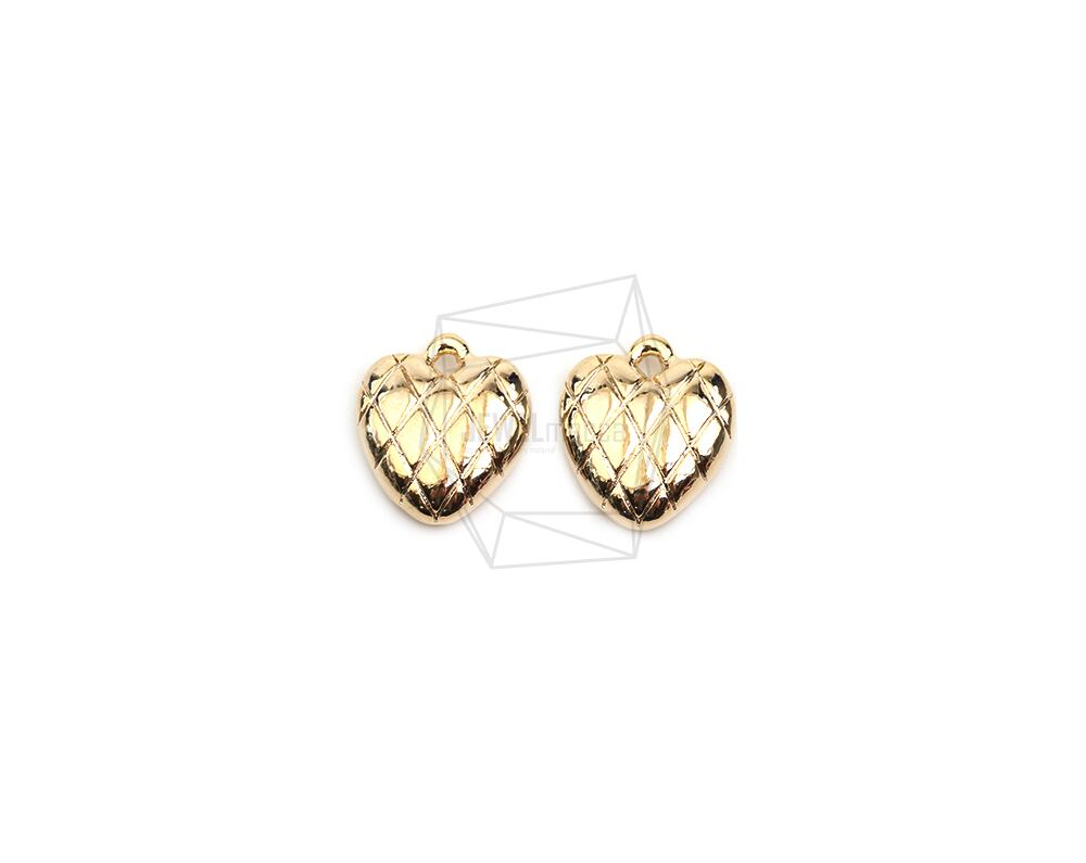 PDT-2694-G/2PCS/Heart Pendant/20mm X 22.8mm/ Gold Plated Over Brass