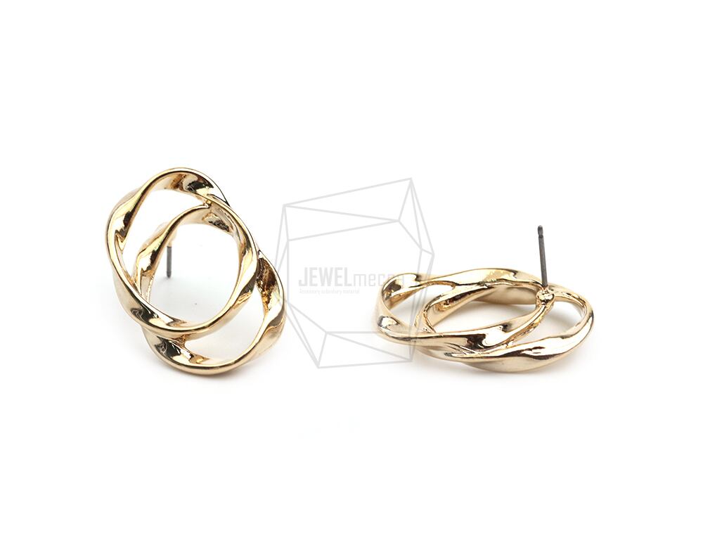 ERG-2439-G/2PCS/Double Round post earring/20mm x 30mm/Gold Plated Over Tin ,Stainless Post