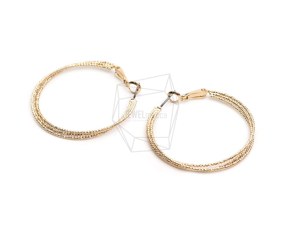 ERG-2443-G/2Pcs-Round Ear Post/ 40mm x 43mm /Gold Plated over Brass,Stainless Post
