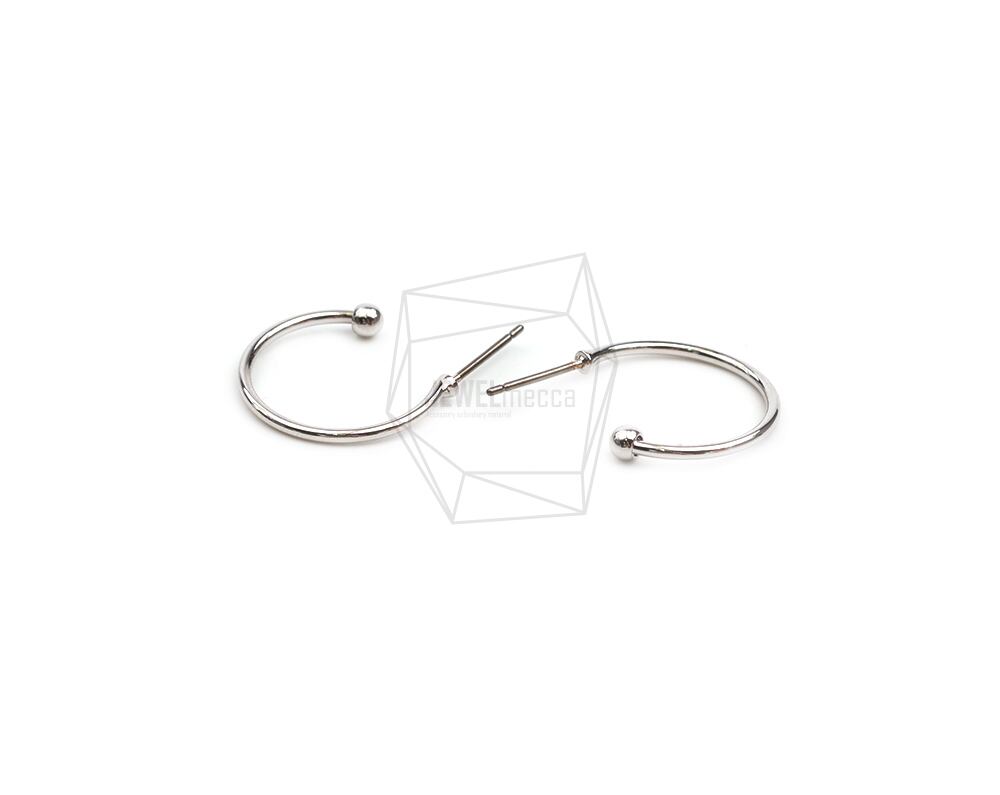 ERG-2446-R/2Pcs-Round Ear Post/18mm x 18mm /Rhodium Plated over Brass,Stainless Post