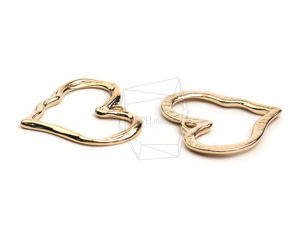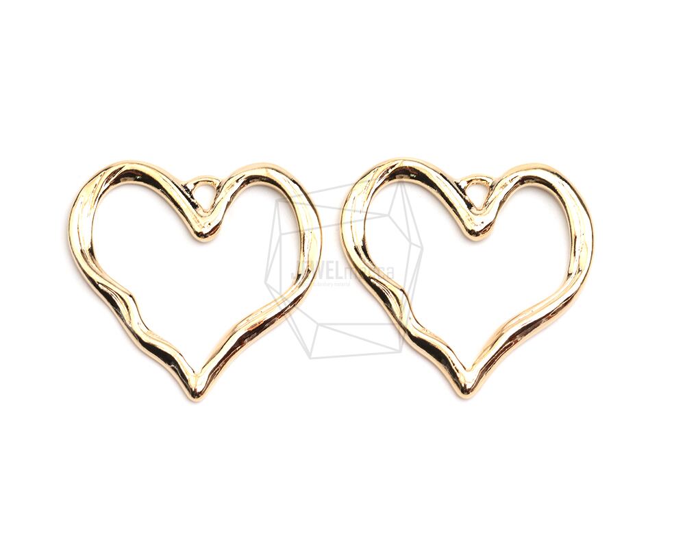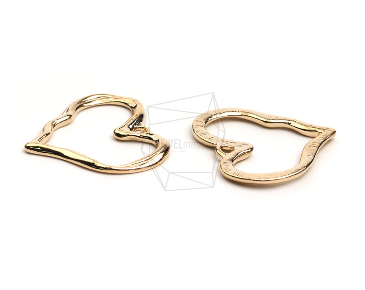PDT-2712-G/2PCS/Heart Pendant/36mm X 37.5mm/Gold Plated Over Tin