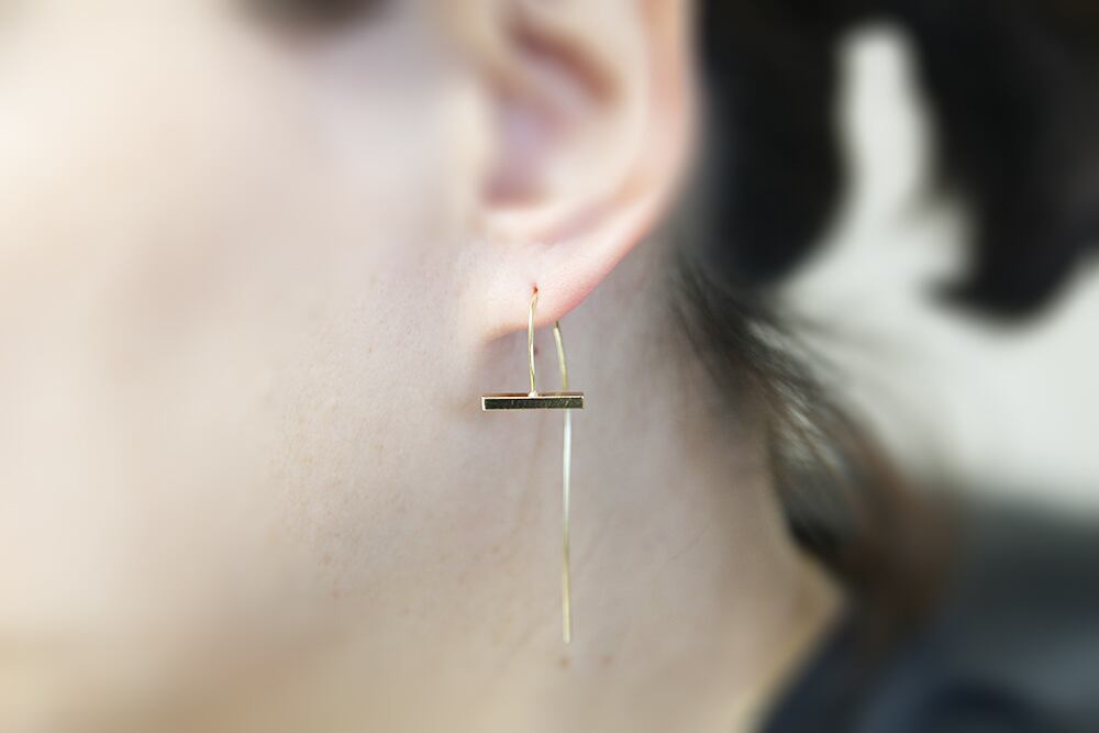 ERG-2462-G/2PCS/Curved Plate Hook Earring/15mm x 58mm/Gold Plated over Brass