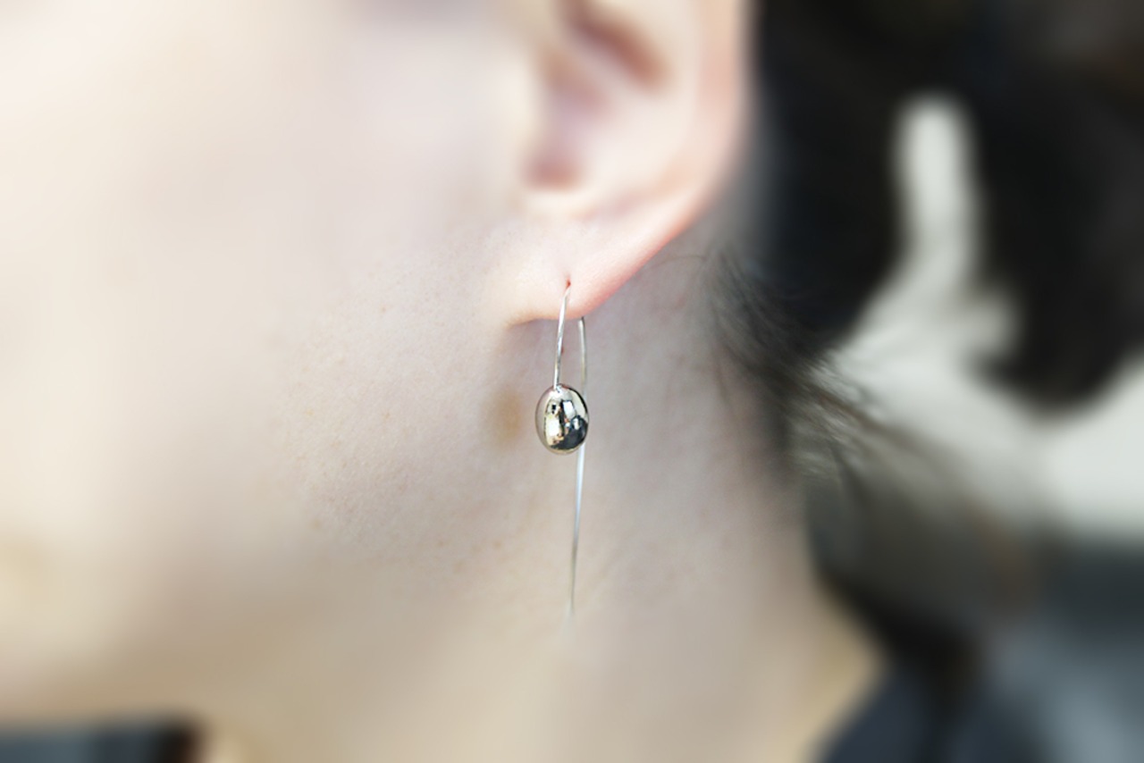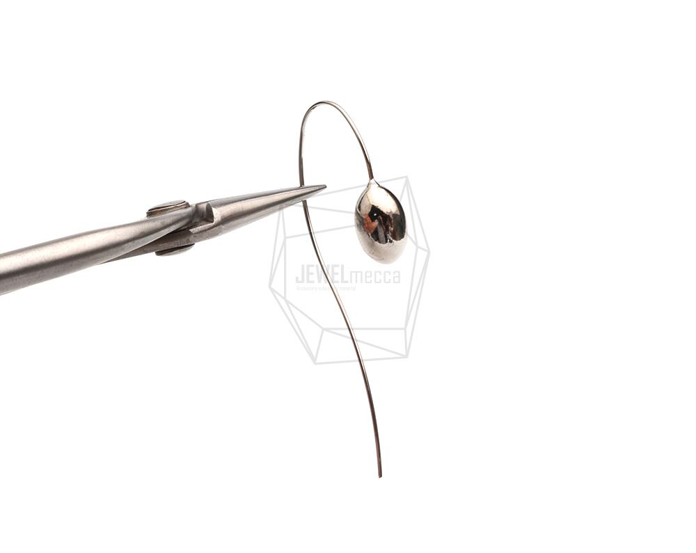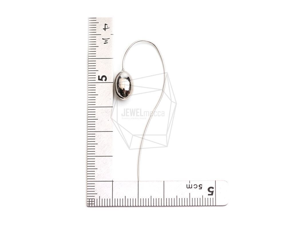 ERG-2463-R/2PCS/Curved Plate Hook Earring/8mm x 58mm/Rhodium Plated over Brass