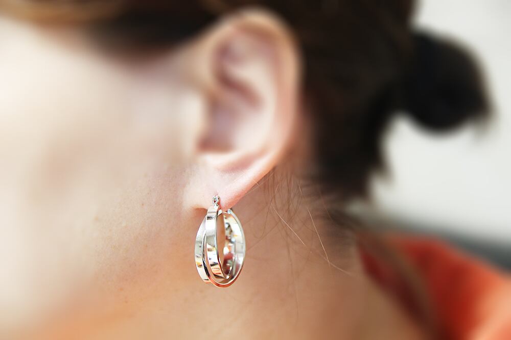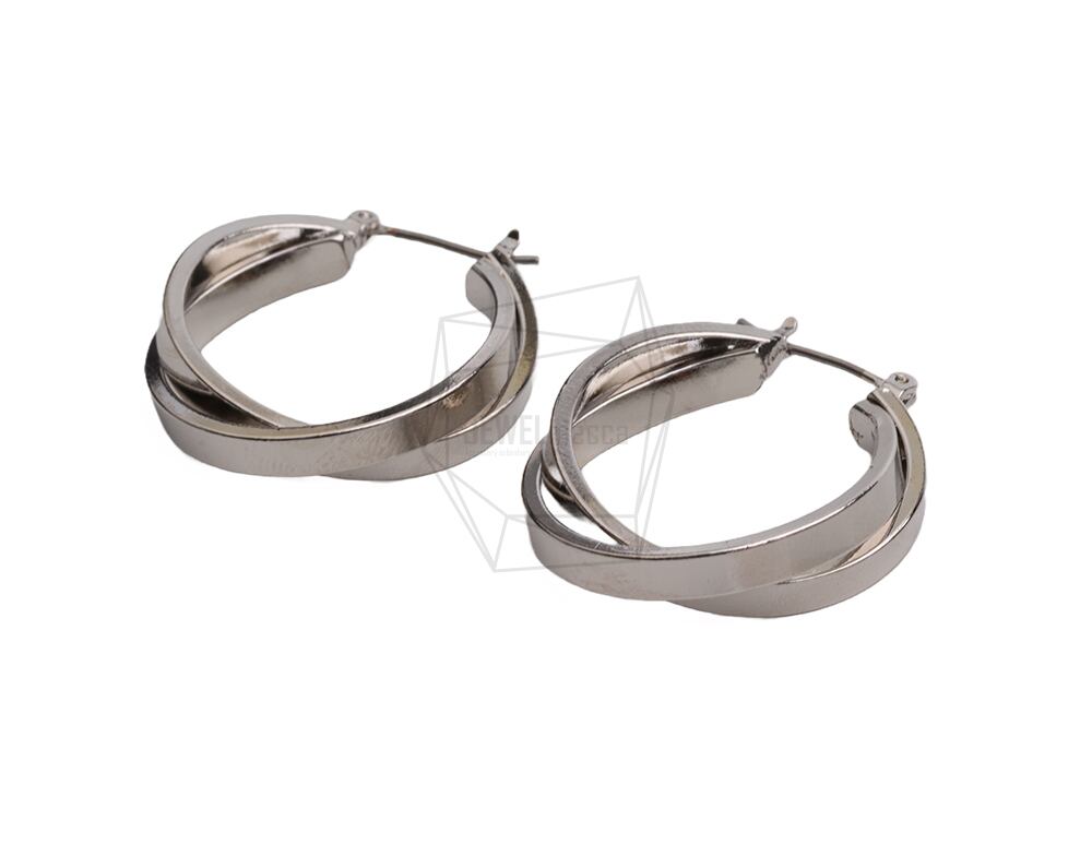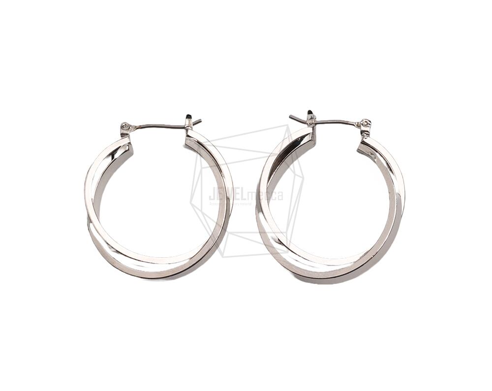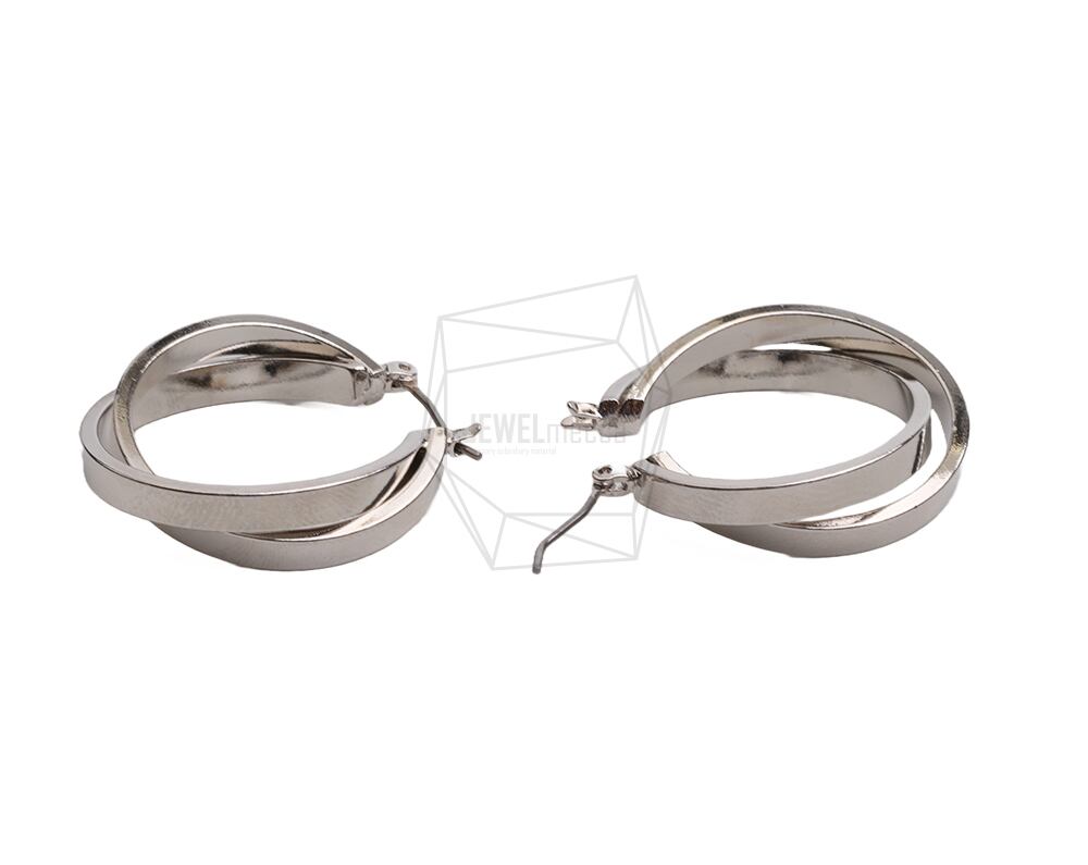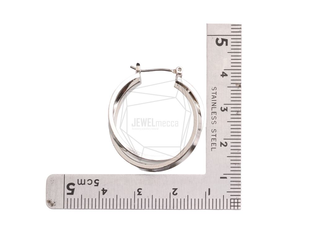 ERG-2469-R/2PCS/Double Round post earring/27mm x 30mm/Rhodium Plated Over Brass ,Stainless Post