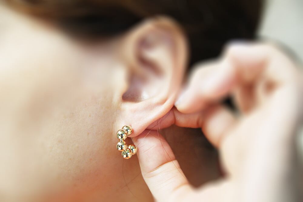 ERG-2470-G/2PCS/Multi ball round Post Earring/14.5mm X 17.3mm/Gold Plated over Brass,Stainless Post
