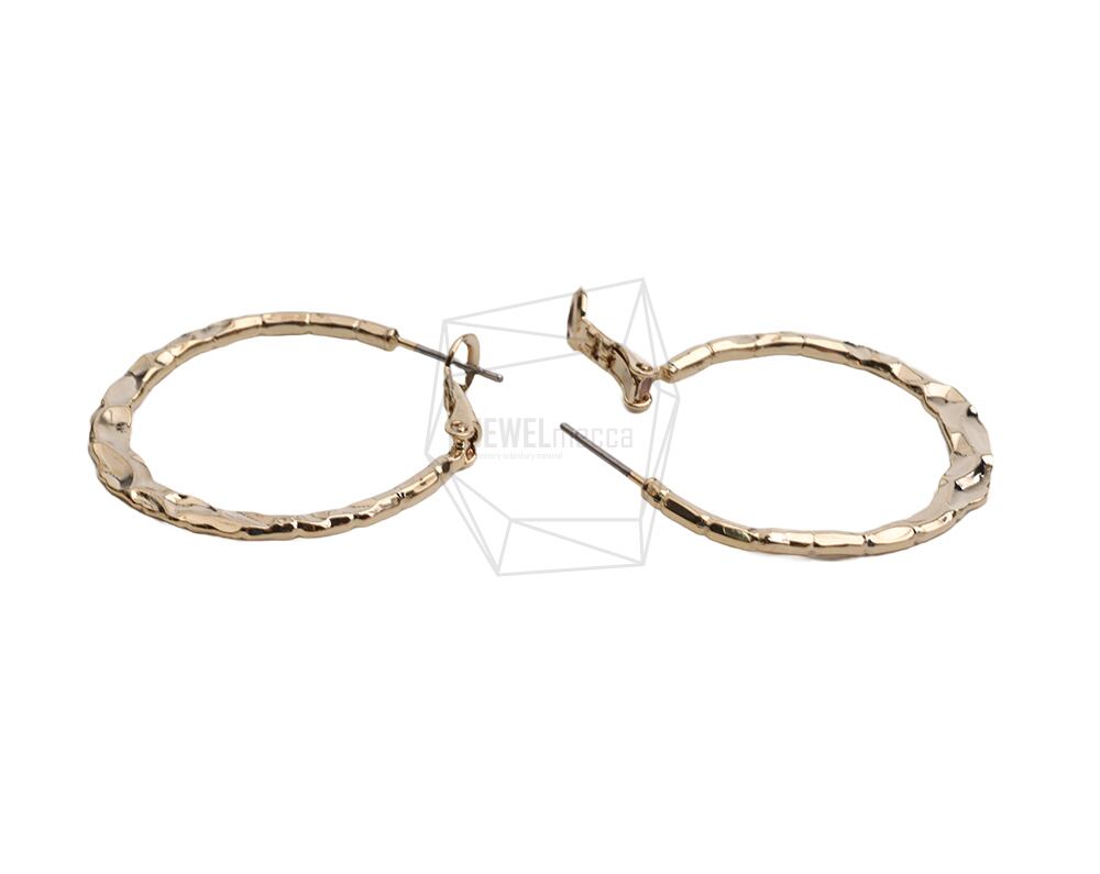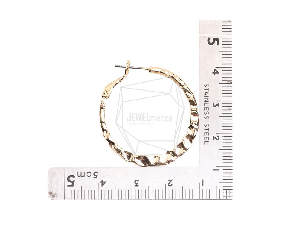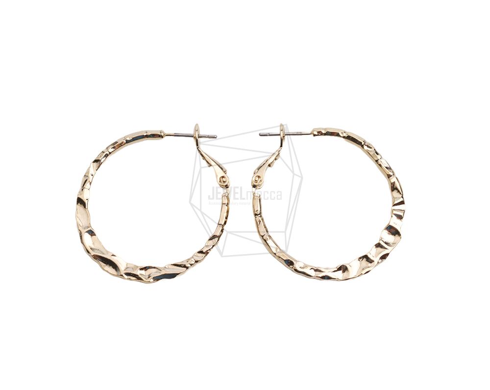ERG-2472-G/2PCS/Hammered round Earring /29.5mm x 29.8mm/Gold Plated Over Tin/Stainless Post