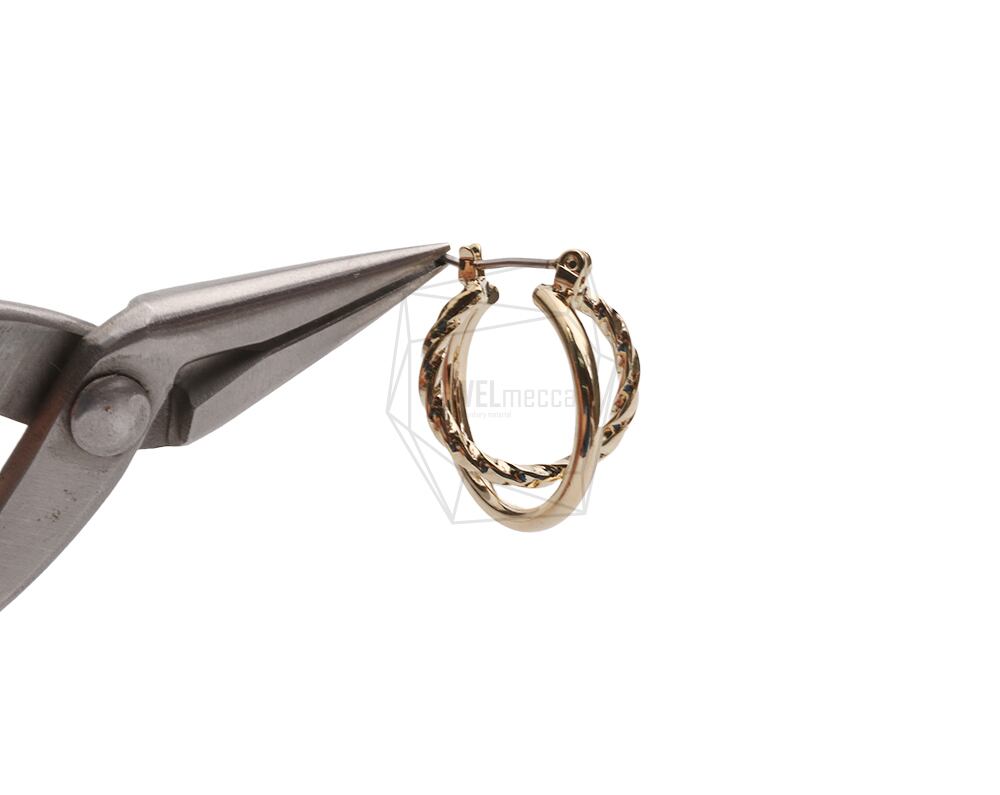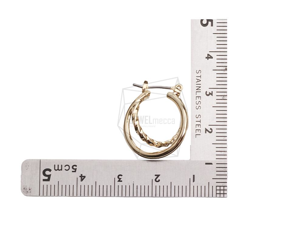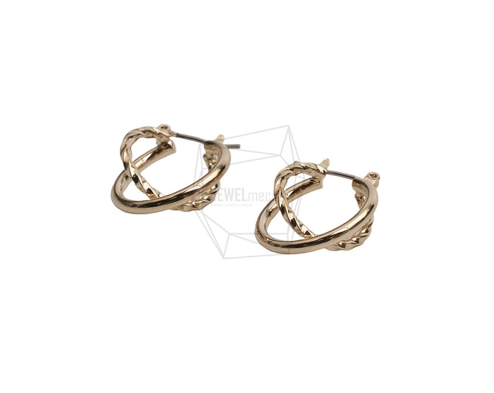 ERG-2473-G/2PCS/Double Round post earring/18.5mm x 21.5mm/Gold Plated Over Brass ,Stainless Post