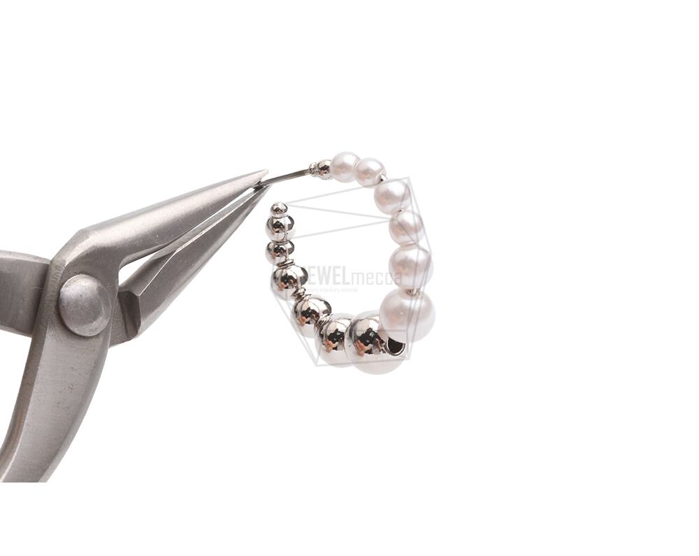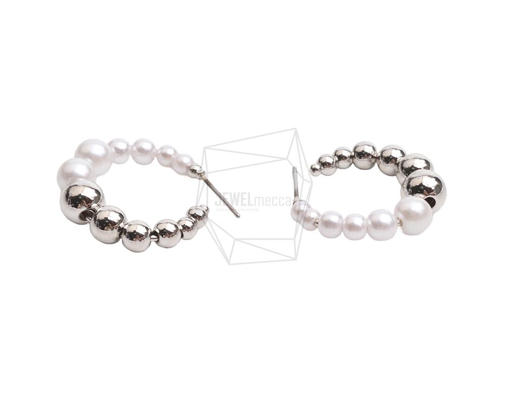 ERG-2475-R/2PCS/Heart Earring Post/23mm x 26mm/Rhodium Plated over Brass/Stainless Post,Imigration Pearl