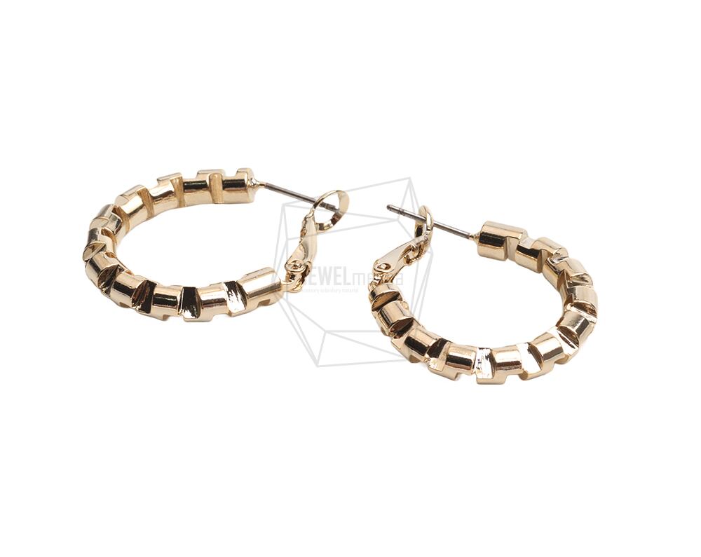 ERG-2476-G/2PCS/Hammered round Earring /24.7mm x 30mm/Gold Plated Over Tin/Stainless Post