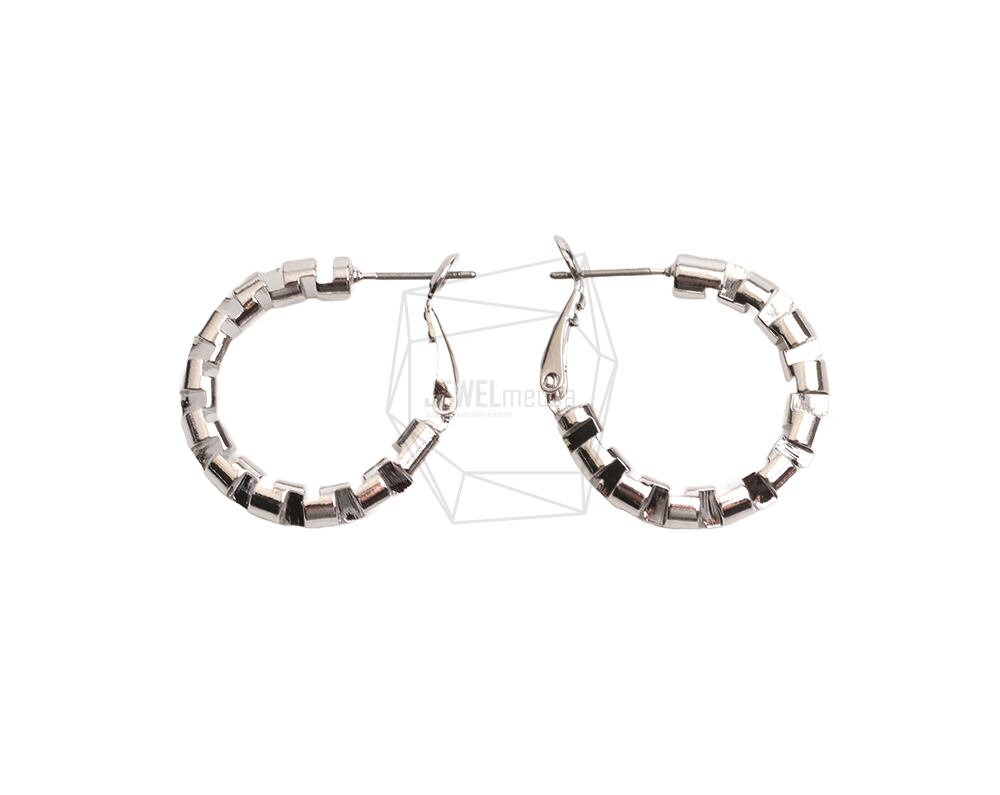 ERG-2476-R/2PCS/Hammered round Earring /24.7mm x 30mm/Rhodium Plated Over Tin/Stainless Post