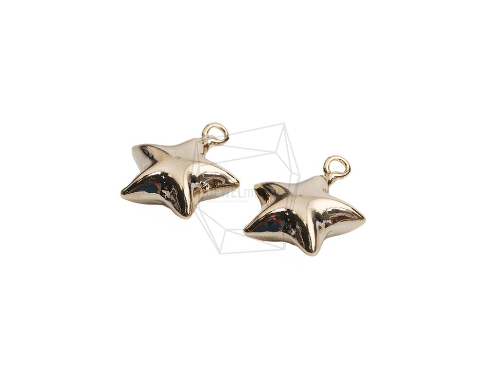PDT-2714-G/2PCS/Cubic Stars Pendant/15.7mm X 18.7mm/Gold Plated Over Brass