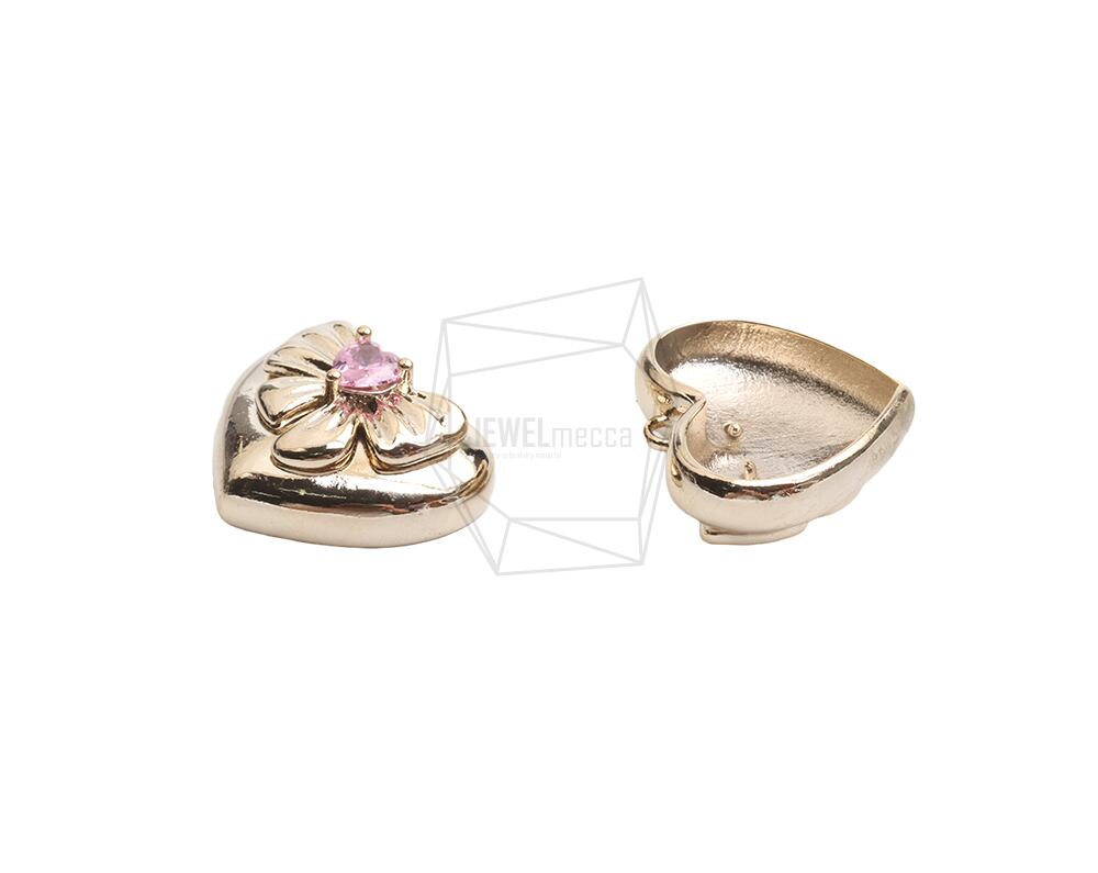 PDT-2715-G/1pcs/Heart Cubic Zirconia/19.5mm x 22mm/Gold Plated over Brass, Set with Cubic Zirconia