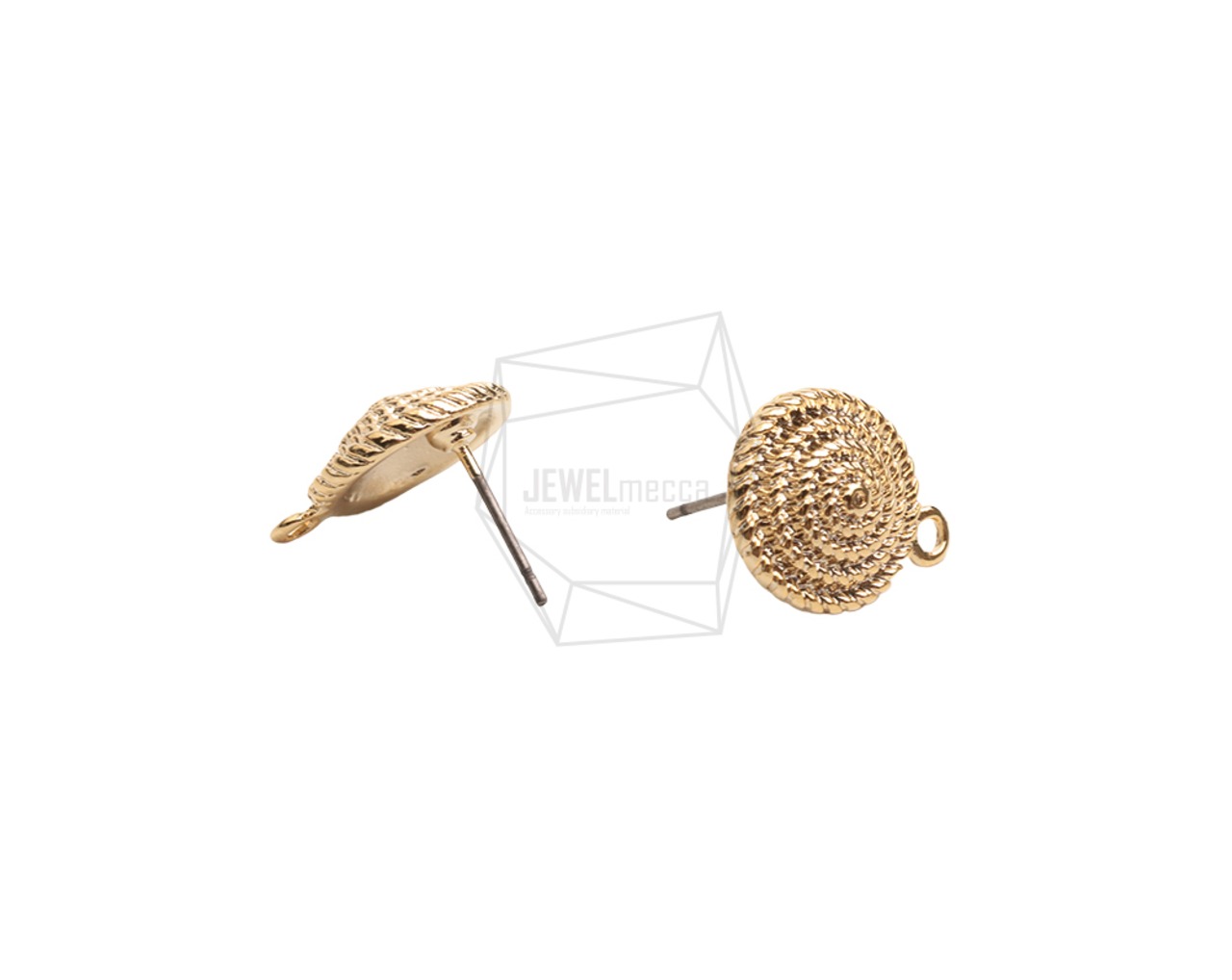 ERG-2482-G/2PCS/Dotted Circle Earring Post/13mm x 15.4mm/Gold Plated Over Tin,Titanium post