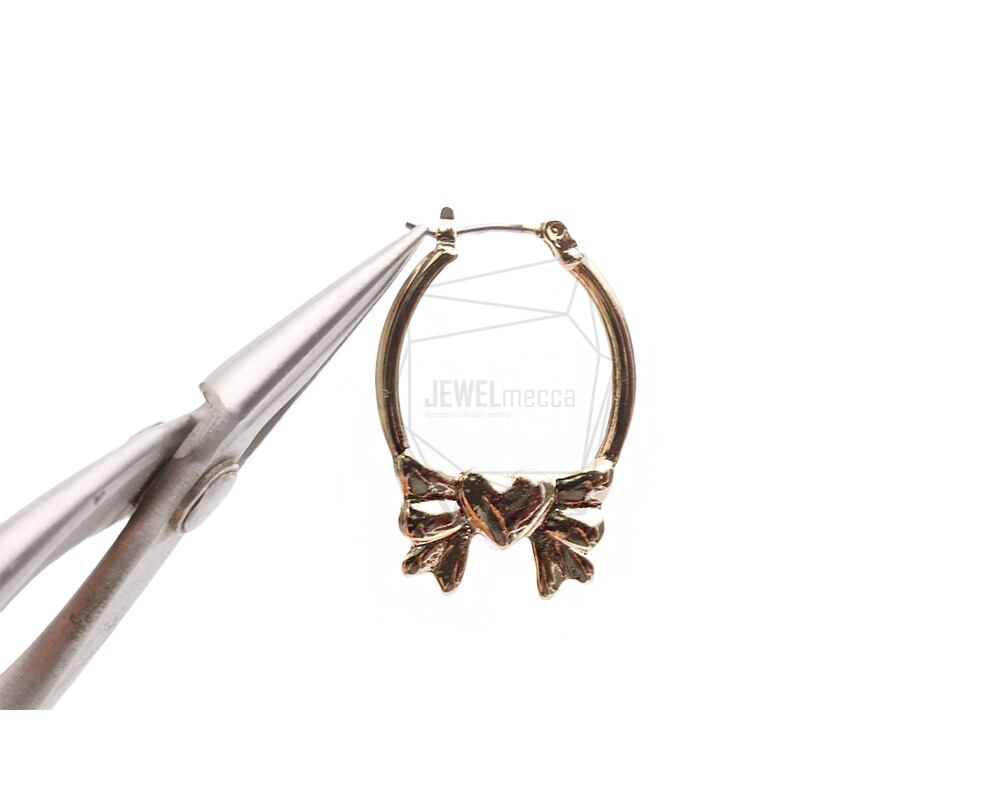 ERG-2489-G/2PCS/Rope Ribbon Earring/19.5mm X 28.4mm/Gold Plated Over Tin,Stainless Post