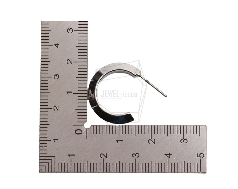 ERG-2497-R/2Pcs-Round Ear Post/ 15.4mm x 19.5mm /Rhodium Plated over Brass,Stainless Post