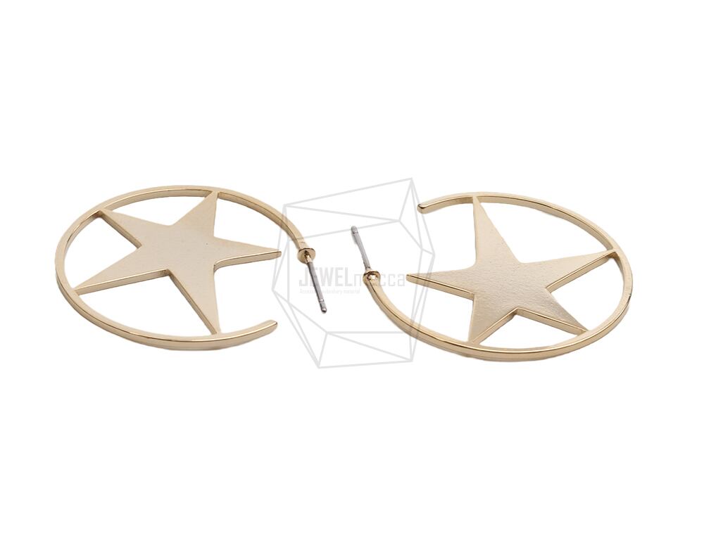ERG-2498-G/2PCS/Star Earring Post/28mm x 30mm/Gold Plated over Brass/Stainless Post