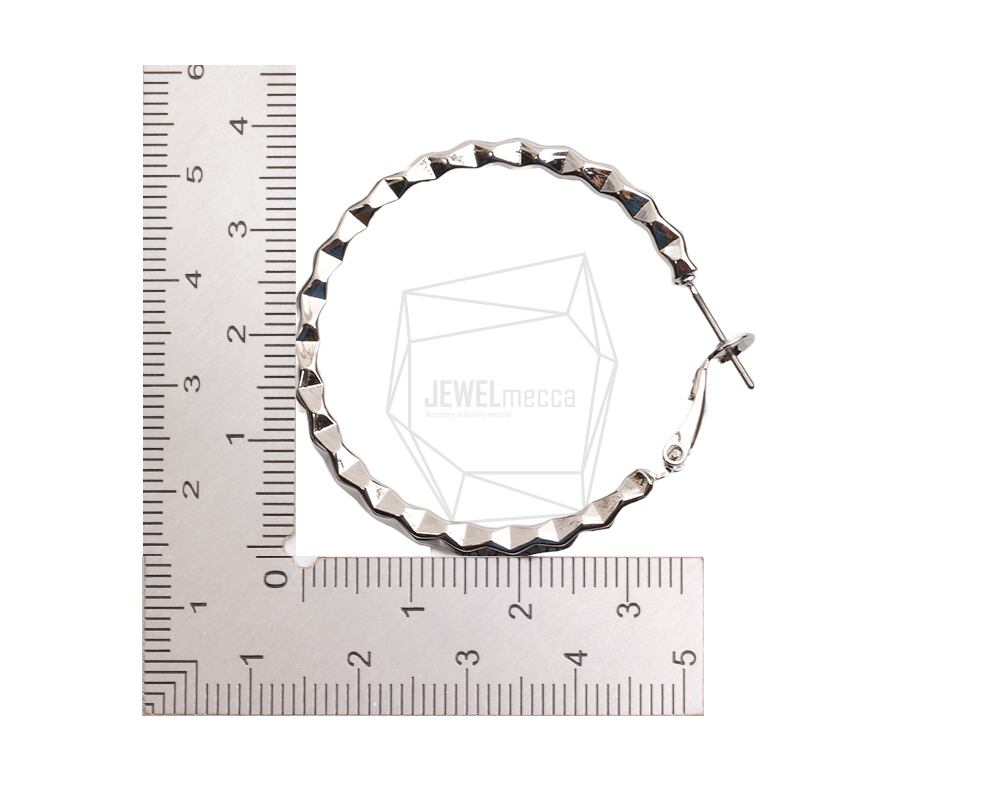 ERG-2500-R/2Pcs-Round Ear Post/ 40mm x 43mm /Rhodium Plated over Brass,Stainless Post