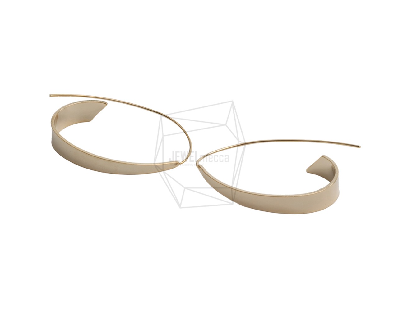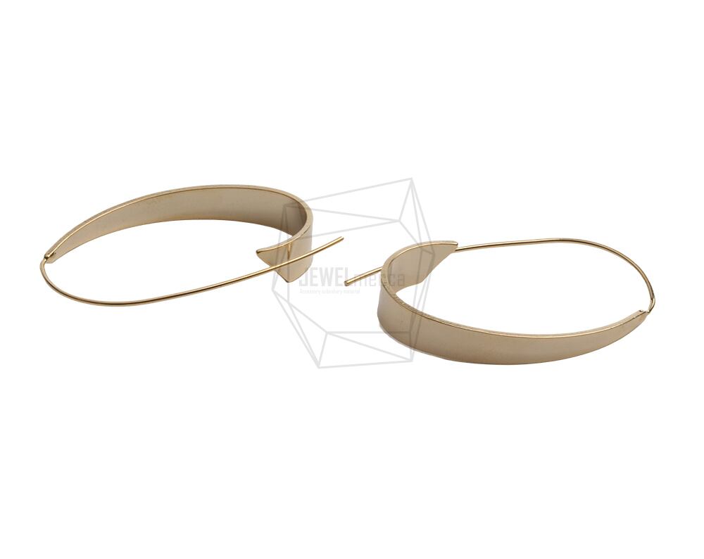 ERG-520-G/2PCS/Thick Band Hoop Earring Post/40mm x 52mm/Gold Plated over Brass