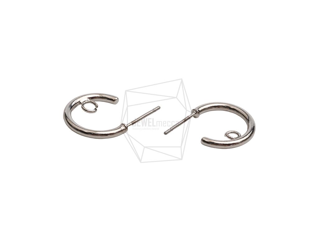ERG-2524-R/2Pcs-Round Ear Post/ 13mm x 15mm /Rhodium Plated over Brass,Stainless Post