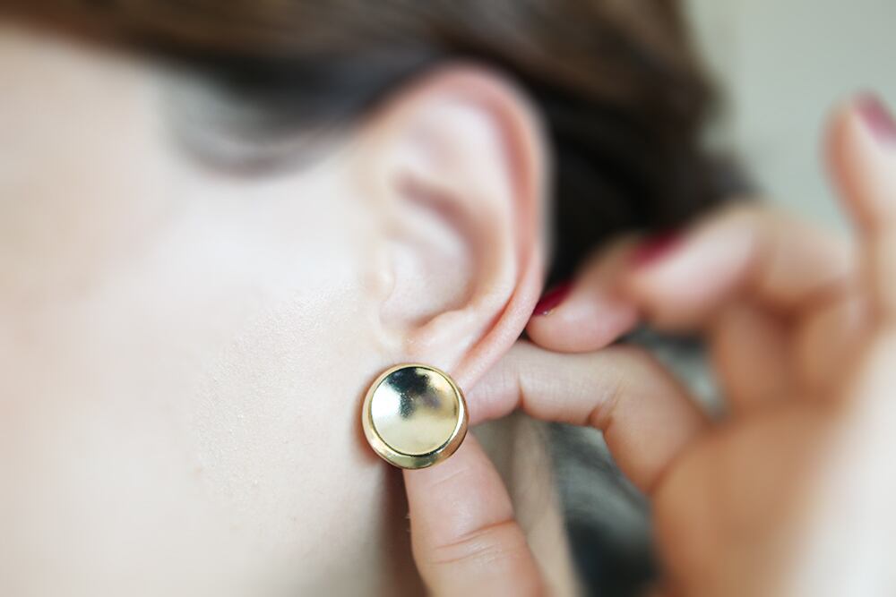 ERG-2526-G/2Pcs-Round Ear Post/ 19.3mm x 19.4mm /Gold Plated over Brass,Titanium post