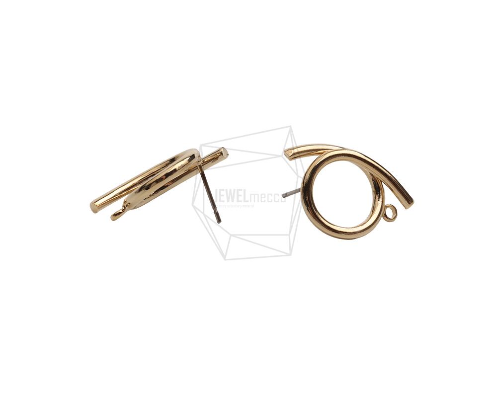 ERG-2529-G/2Pcs-Round Ear Post/ 15mm x 24mm /Gold Plated over Brass,Stainless Post