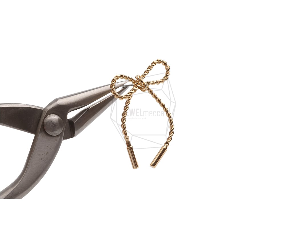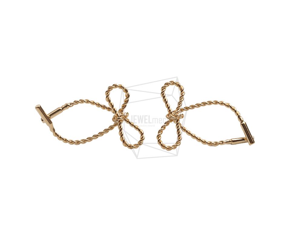 ERG-2530-G/2PCS/Rope Ribbon Earring/21mm X 30mm/Gold Plated Over Brass,Stainless Post