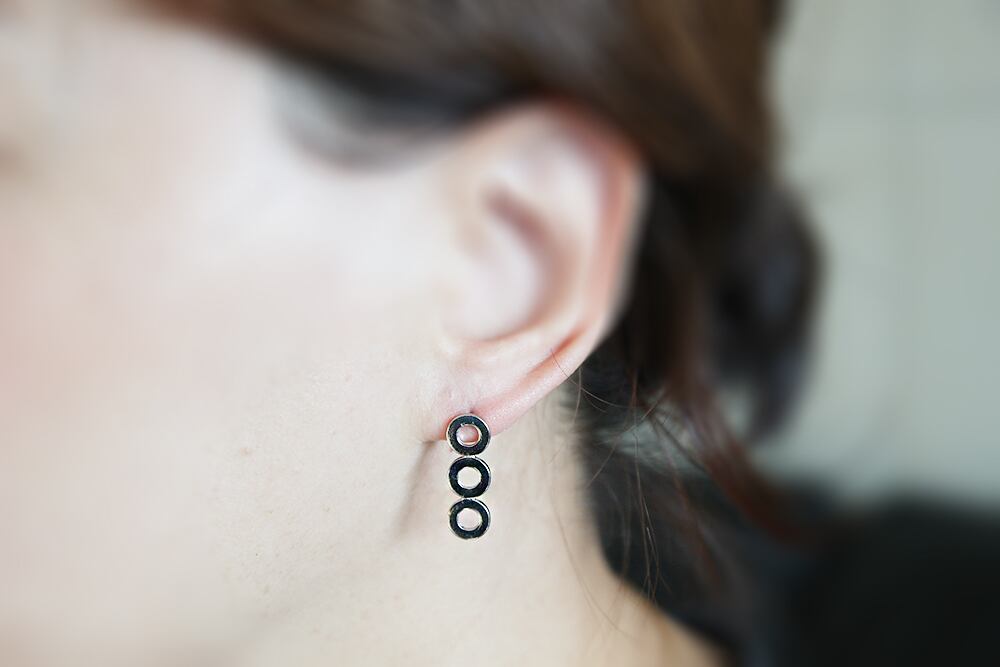 ERG-2532-R/2PCS/Triple round Post Earring/8mm X 24mm/Rhodium Plated Over Brass,Stainless Post