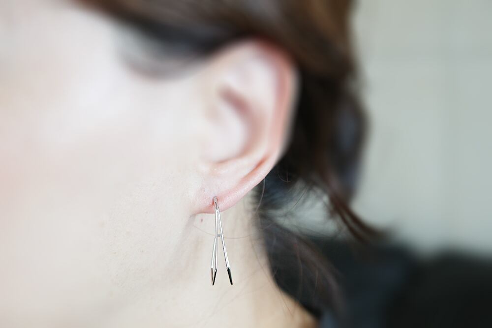 ERG-2533-R/2Pcs-Round Ear Post/ 15mm x 32mm /Rhodium Plated over Brass,Stainless Post