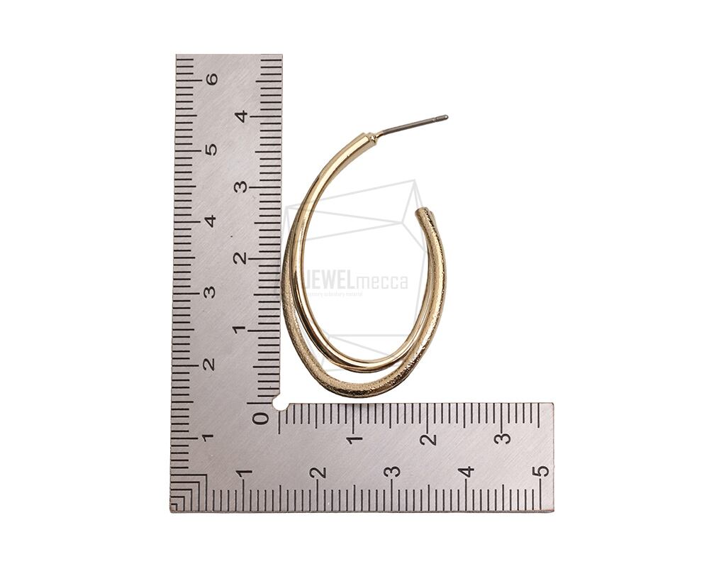 ERG-2534-G/2PCS/Double round Post Earring/22mm X 37mm/Gold Plated Over Brass, Titanium post