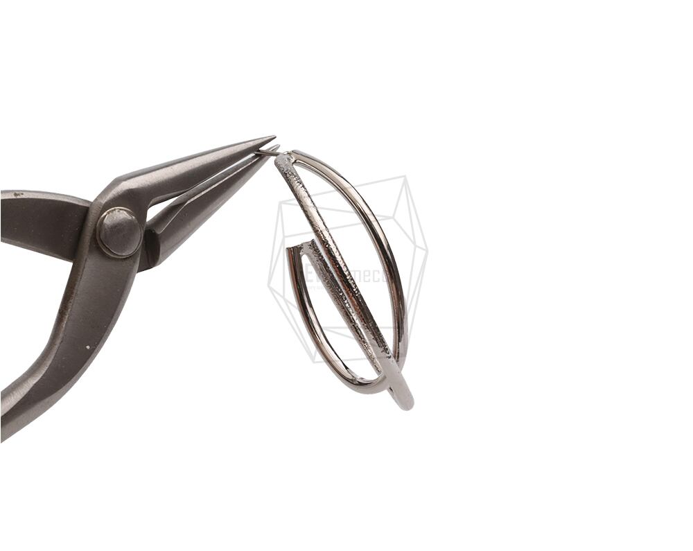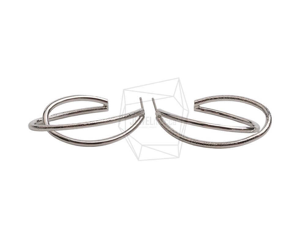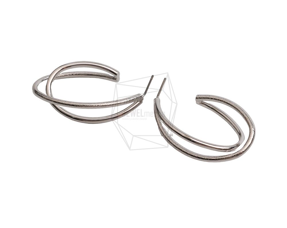ERG-2534-R/2PCS/Double round Post Earring/22mm X 37mm/Rhodium Plated Over Brass, Titanium post