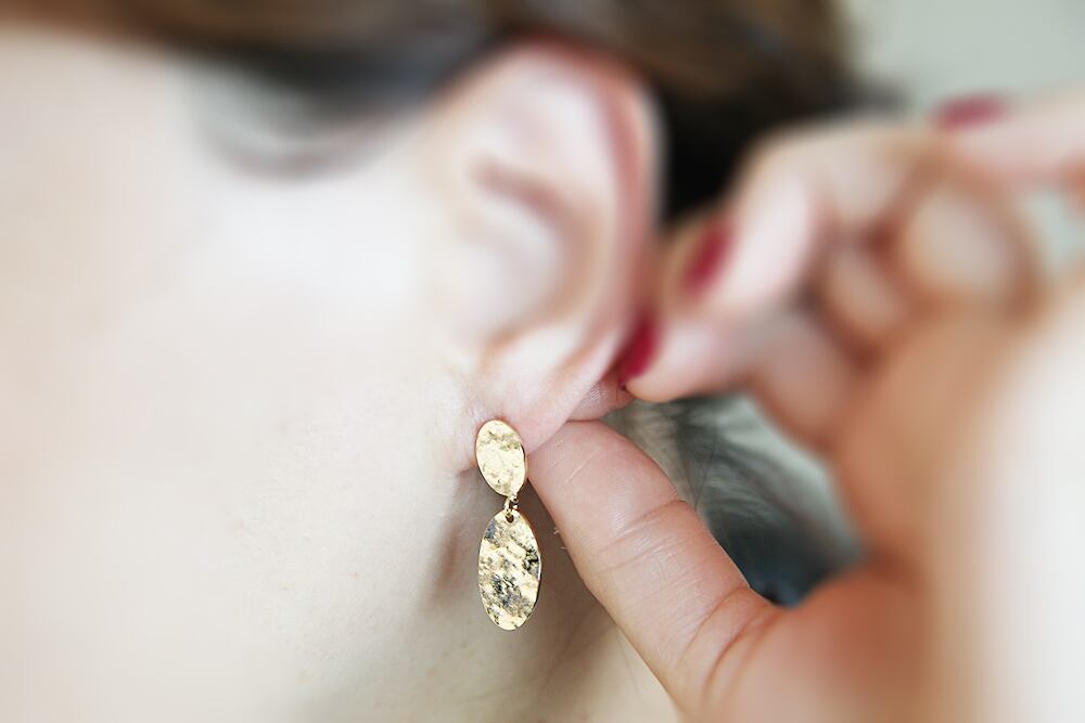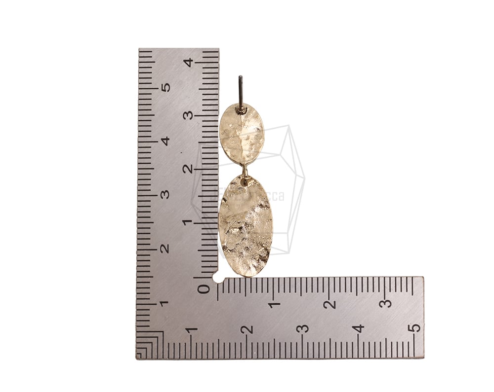 ERG-2536-G/2PCS/Double Linked Rings Post Earring/10mm X 33mm/ Gold Plated Over Brass,Stainless Post