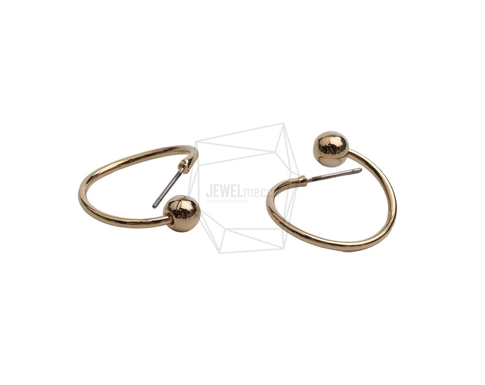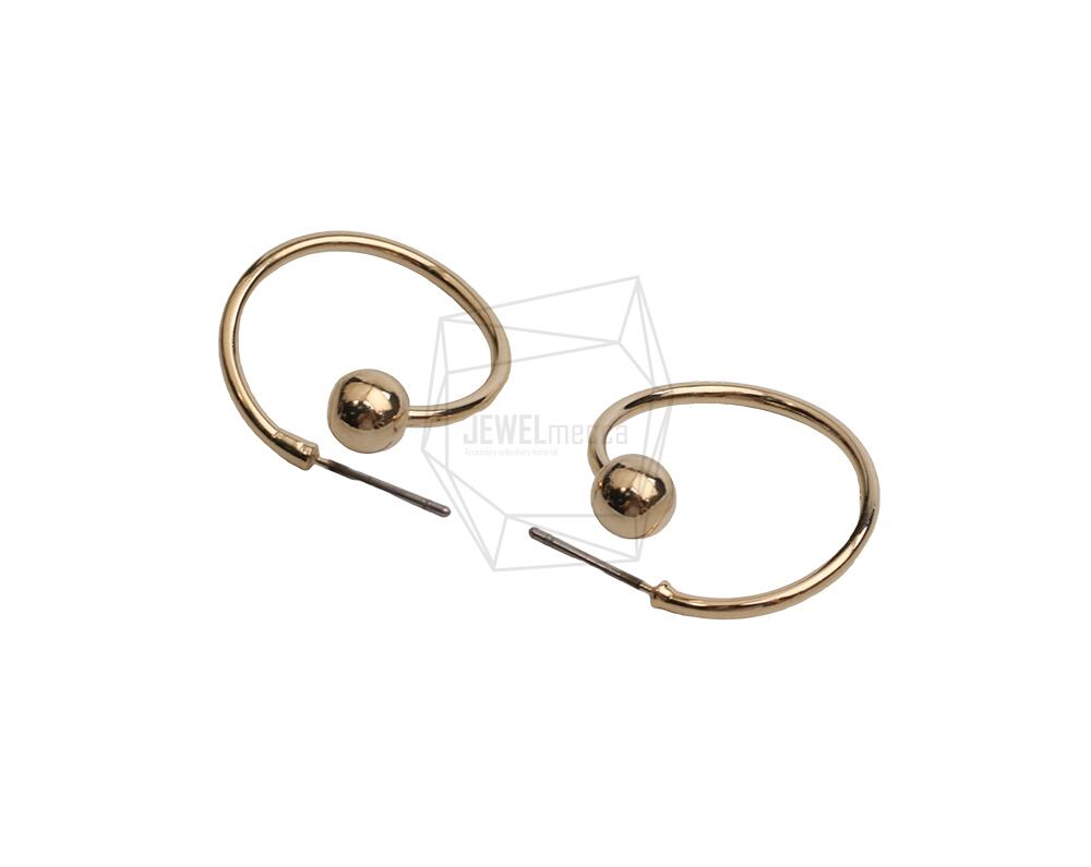 ERG-2539-G/2Pcs-Round Ear Post/ 21mm x 22.5mm /Gold Plated over Brass, Stainless Post