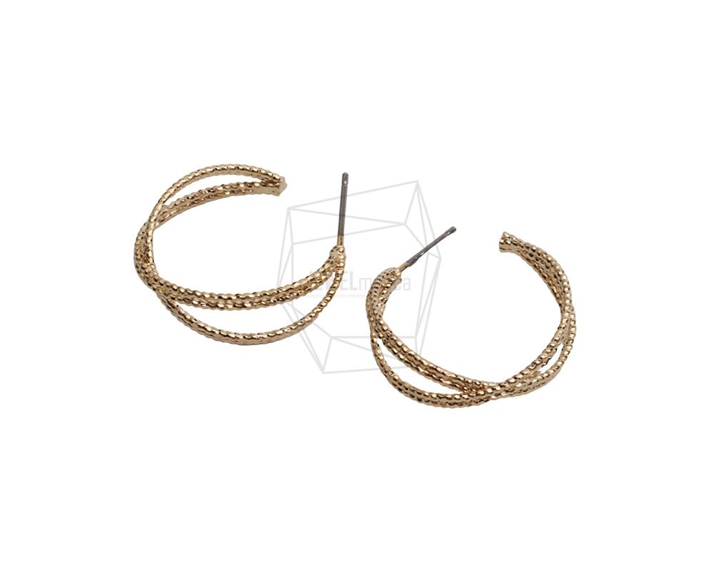 ERG-2540-G/2PCS/Double round Post Earring/22mm X 23.3mm/Gold Plated Over Brass, Stainless Post