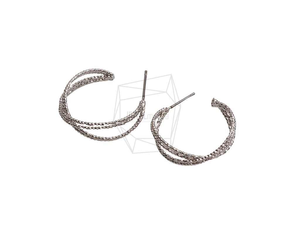 ERG-2540-R/2PCS/Double round Post Earring/22mm X 23.3mm/Rhodium Plated Over Brass, Stainless Post
