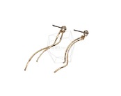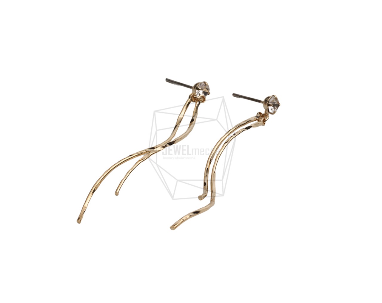 ERG-2542-G/2PCS/Long Twisted Post Earring /6mm X 58mm/Gold Plated Over Brass,Stainless Post,CZ